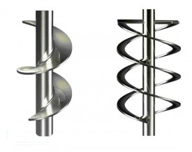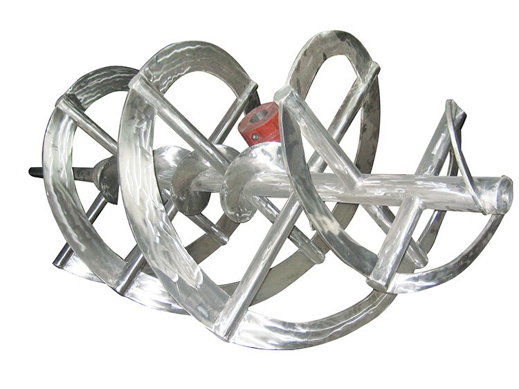 低速型桨,循环优良型桨,高粘度型桨,轴向流桨。物料沿着螺旋面上升或下降形成轴向的上下循环。一般是近罐壁上升,中轴汇合下压。适用于高粘度介质的传热、混合、溶解反应等过程。此类羞羞视频APP在线看黄器应用于特高粘度介质羞羞视频APP在线看黄。杆螺带(俗称螺杆)是螺带的特殊型式,直径小沿轴引成螺带与外螺带配合应用时方向相反可强化轴向循环。